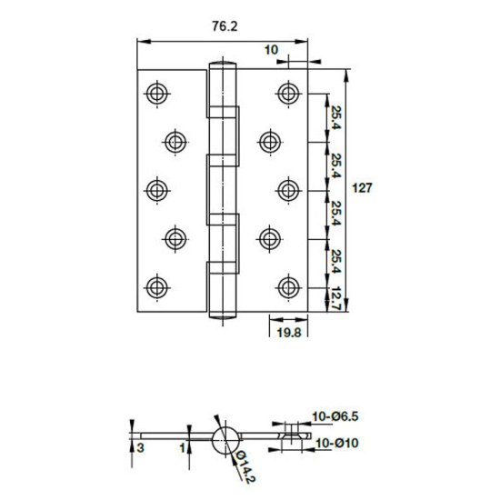 + Kích thước bản lề: 127x76x3 mm (5”x3”x3mm )