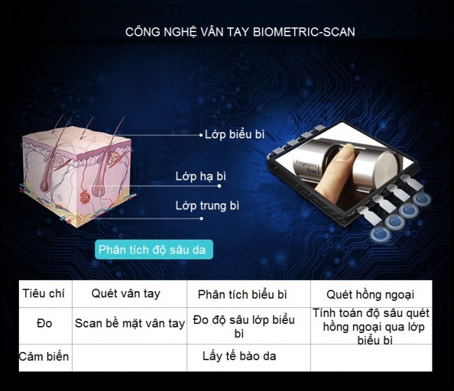Biometric Scan = Life Scan + Dermatological analysis ( Phân tích lớp hạ bì )