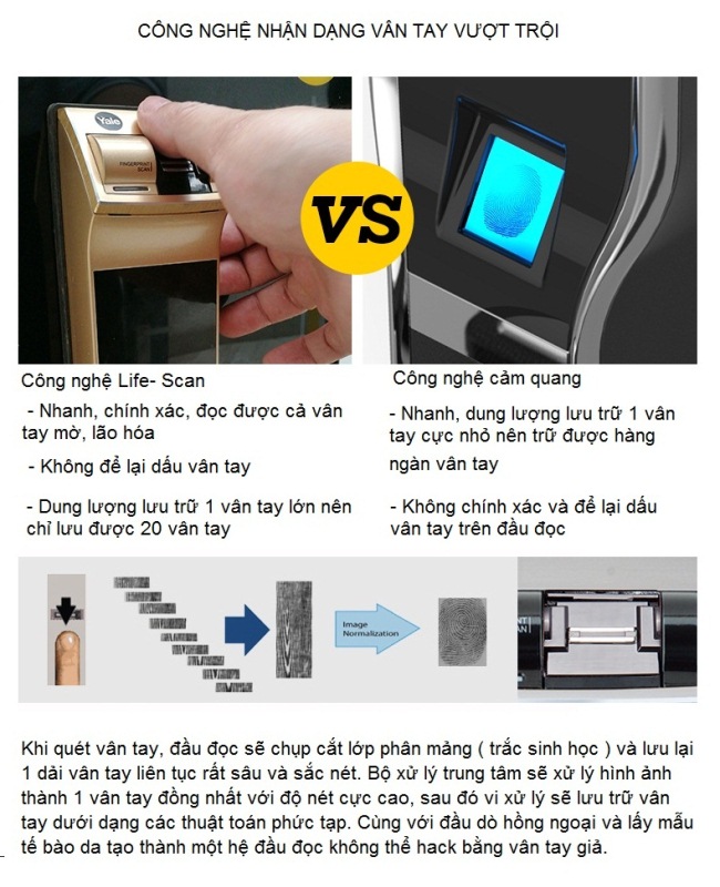 Chúng ta cùng xem sự so sánh công nghệ quét vân tay Sinh Trắc Học (Life Scan) và Quang Học (Cảm quang).