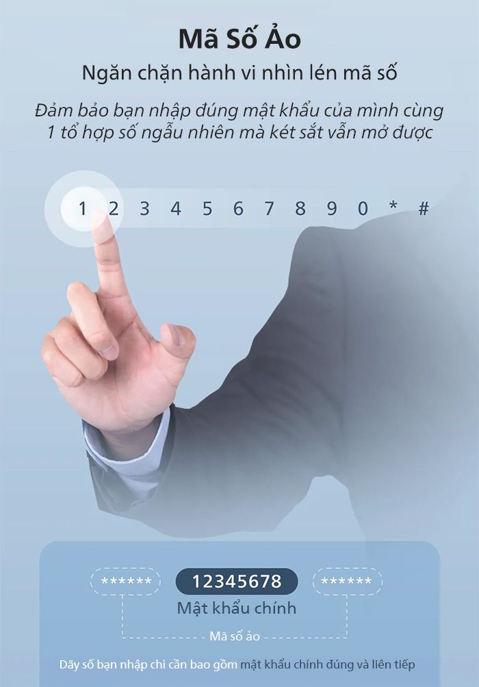 Mở khóa: 120 vân tay, 100 mã số, 2 chìa cơ