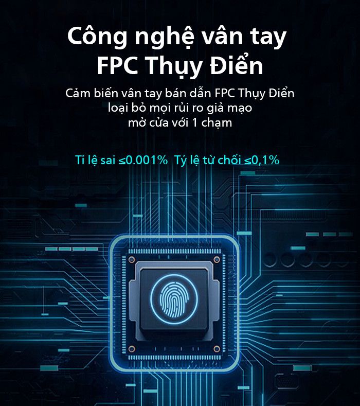 Két sắt Philips SBX701 ứng dụng công nghệ vân tay FPC Thụy Điển trứ danh của Philips. Công nghệ này sử dụng tới 3 cảm biến để nhận diện vân tay: cảm biến điện dung, cảm biến nhiệt độ, cảm biến áp suất. Điều đó giúp cho khả năng bảo mật cao hơn phương pháp nhận diện quang học thông thường. Nhờ vậy, công nghệ này hiện đang được sử dụng tại hơn 135 ngân hàng trên toàn thế giới.