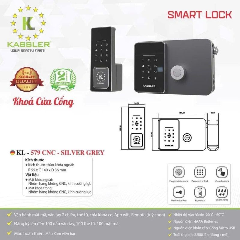 Khóa Kassler KL-579 CNC Silver Grey nổi bật với khả năng chống nước ở cả thân khóa ngoài và thân khóa trong nên các gia đình có thể lắp cho cổng không có mái che mưa