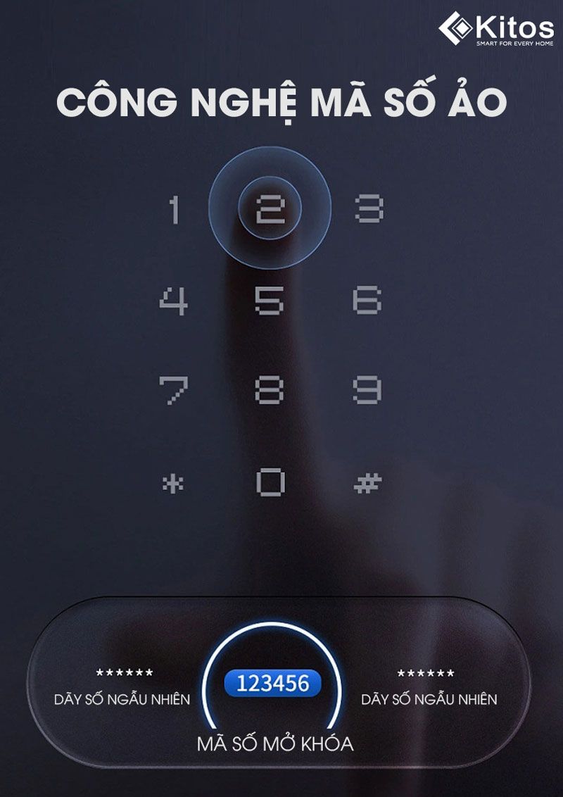 Kitos DLS8 CNC cho phép người dùng nhập thêm các số ngẫu nhiên trước hoặc sau mật khẩu thật mà vẫn mở được cửa. Giải pháp thông minh này giúp bảo vệ mật khẩu an toàn, tránh bị nhìn trộm, đặc biệt khi có người đứng cạnh
