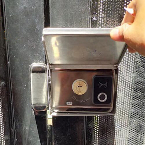 Để mở khóa từ bên trong cũng cần vân tay, thẻ từ, chìa cơ nên khóa dùng được cho cổng nan thưa, hoặc đảm bảo kẻ trộm có nhảy vào trong sân cũng không mở được khóa cổng