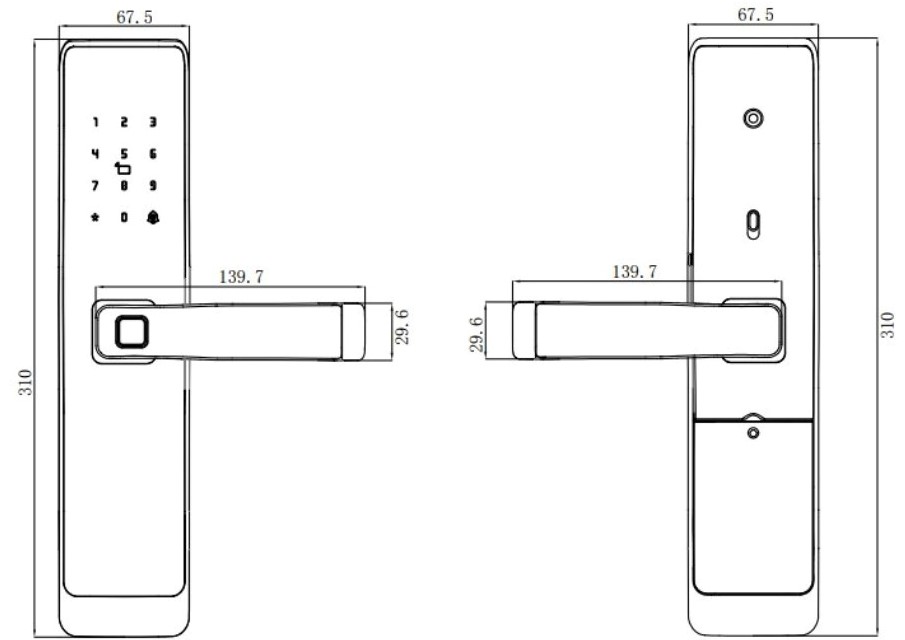 Bảng điều khiển được thiết kế tối giản, dễ sử dụng với hệ thống đèn LED hiển thị rõ cả trong điều kiện thiếu ánh sáng. Loại khóa này có tay gạt tích hợp cảm biến vân tay ngay trên tay nắm cửa tạo sự tiện lợi khi mở cửa chỉ với 1 động tác chạm và đẩy.