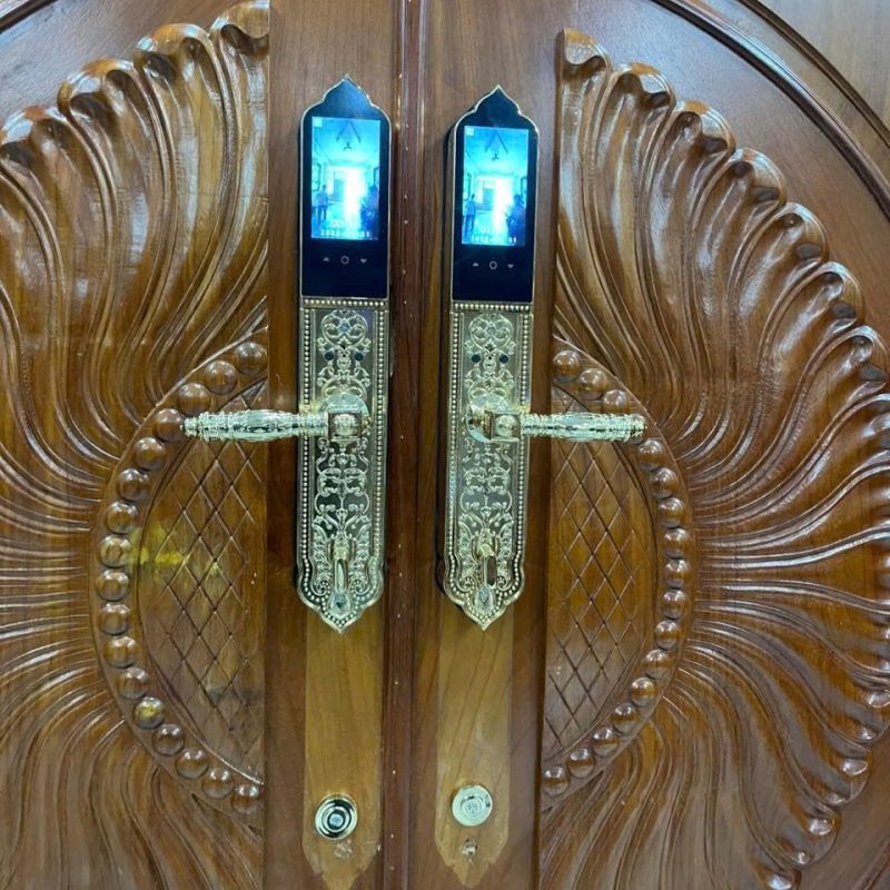 Khóa cửa nhận diện khuôn mặt face id, có camera cho chuông hình, và mở từ xa bằng điện thoại. Làm bằng hợp kim kẽm mạ vàng 24K