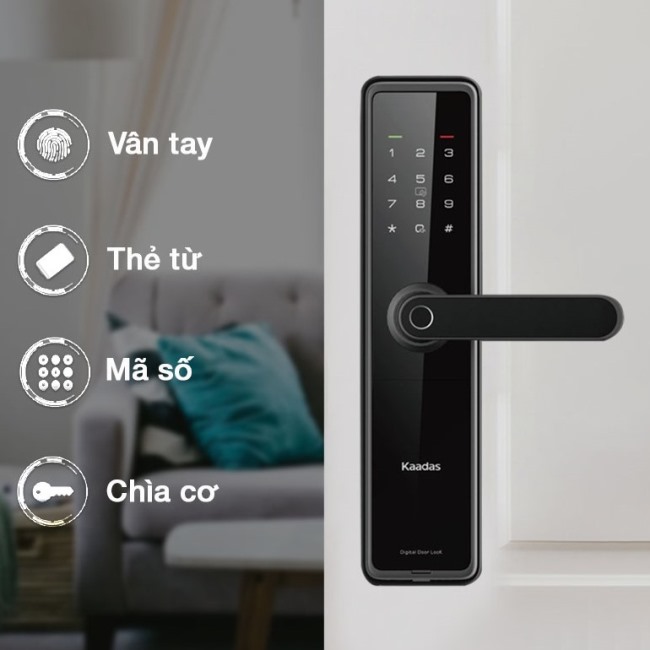 Kaadas L8 tích hợp nhiều phương thức mở khóa: vân tay, mã số, thẻ từ, chìa cơ.