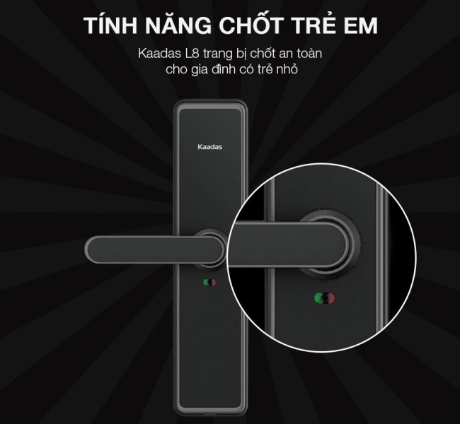 - Kaadas L8 có mở khóa bằng: vân tay, thẻ từ, mã số, chìa cơ. Đăng ký được 100 vân tay, 100 thẻ từ, 1 mã số chủ, 5 mã số người dùng, 5 mã số khách (dùng 1 lần). Có sẵn: 2 thẻ từ nhỏ, 2 chìa cơ