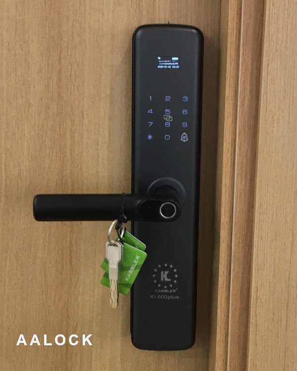 - Khóa mở bằng: vân tay, thẻ từ, mã số, chìa cơ. Gia chủ có thể cài thêm phụ kiện để dùng được mobile app wifi với giá thêm 600 nghìn