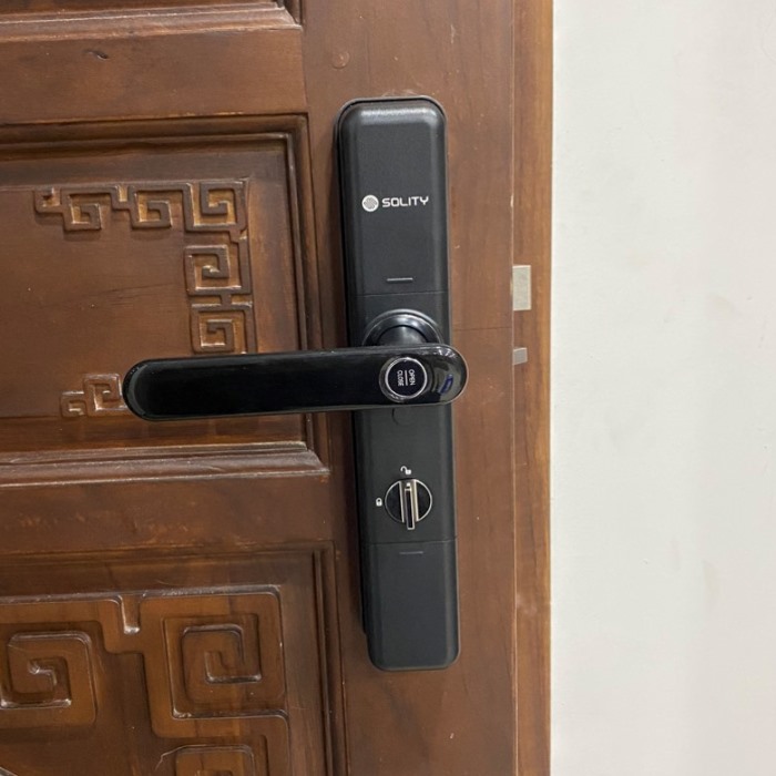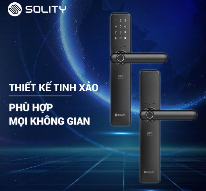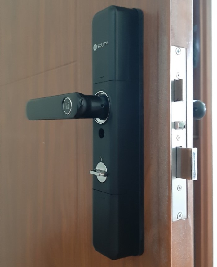 - Chỗ đọc vân tay ngay trên tay cầm giúp các thao tác mở khóa diễn ra nhanh chóng và dễ dàng chỉ với 1 chạm. Cũng như các dòng khóa vân tay khác của Solity, hãng sử dụng công nghệ vân tay cảm ứng đa điểm (Area scanning) nhận diện dựa trên 3 loại cảm biến (nhiệt độ, điện dung và áp suất) nên có độ bảo mật rất cao do chống vân tay giả hay sao chép