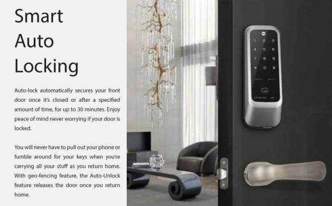 - Ổ khóa tự động hoàn toàn: tự động khóa sau khi cửa đóng, không lo quên khóa cửa. Khi cần có thể chuyển sang chế độ khóa thủ công