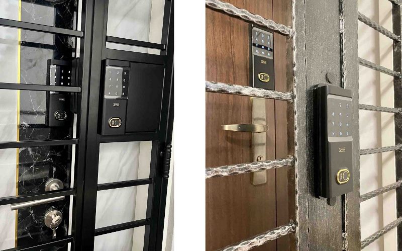 - Bên ngoài mở bằng: vân tay, thẻ từ, mã số, mobile app bluetooth. Bên trong ra mở bằng: thẻ từ, chìa, app bluetooth. Mở rộng: remote, wifi