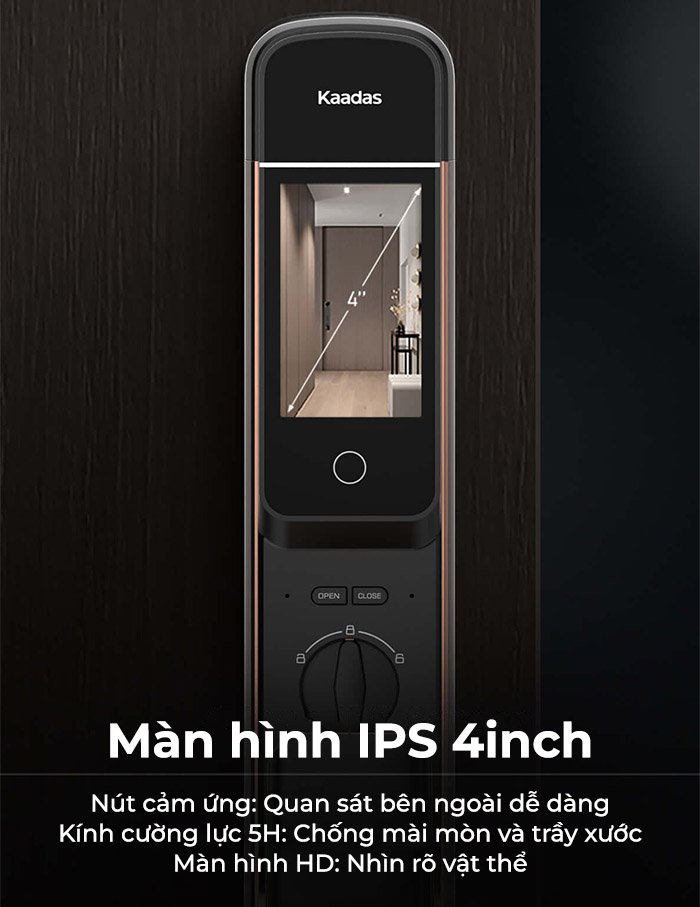 Kaadas K20 Pro Max được trang bị một camera bên ngoài và một màn hình IPS kích thước 4 inch bên trong, mang lại hình ảnh cực kỳ rõ nét và màu sắc đẹp mắt. Ngay khi có người bấm chuông, hình ảnh sẽ ngay lập tức được truyền tải vào màn hình, cho phép bạn kiểm soát người lạ đến nhà một cách dễ dàng. Bạn cũng có thể kiểm tra tình hình trước cửa bất cứ lúc nào.