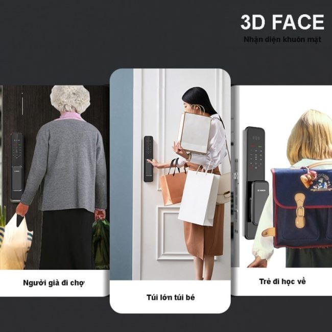 - Mở bằng: khuôn mặt, vân tay, thẻ từ, mã số, chìa cơ