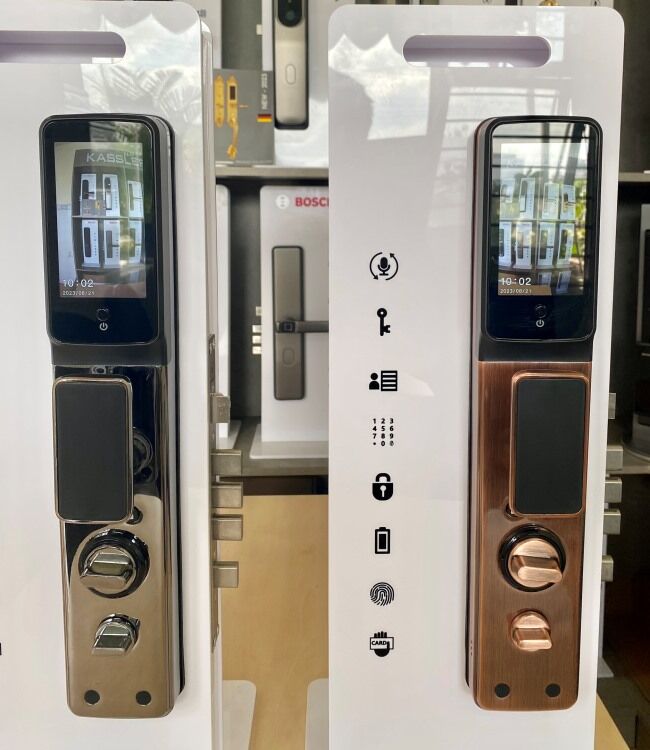Kassler KL-838 red bronze có mở khóa bằng: khuôn mặt, vân tay, thẻ từ, mã số, chìa cơ, và mobile app qua sóng wifi/4G