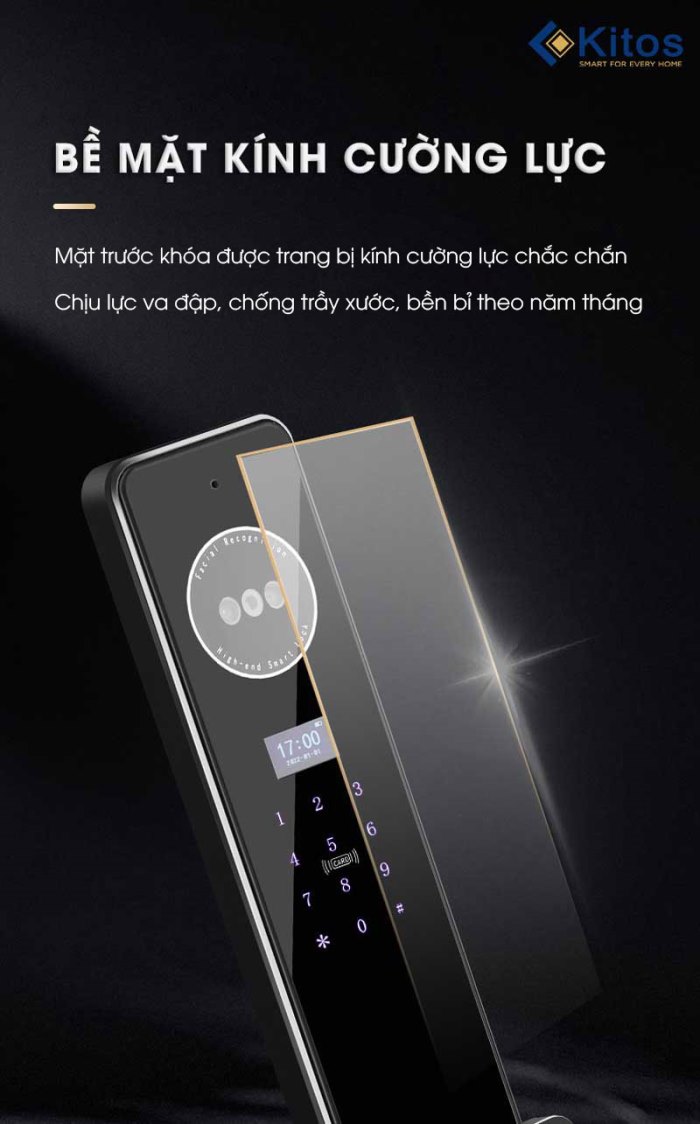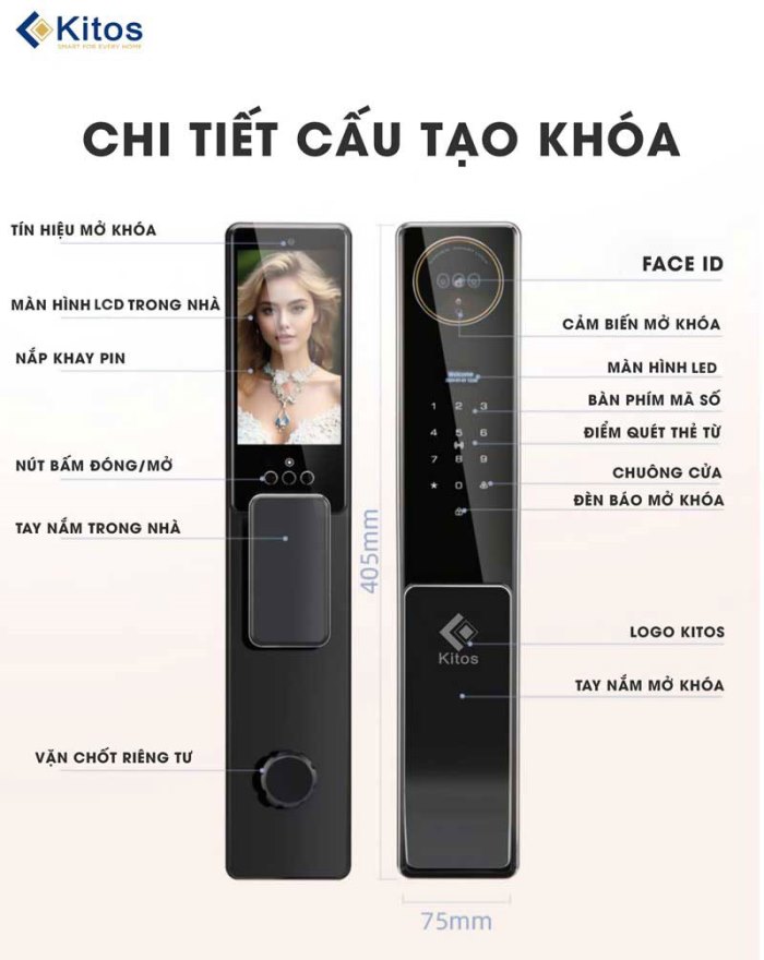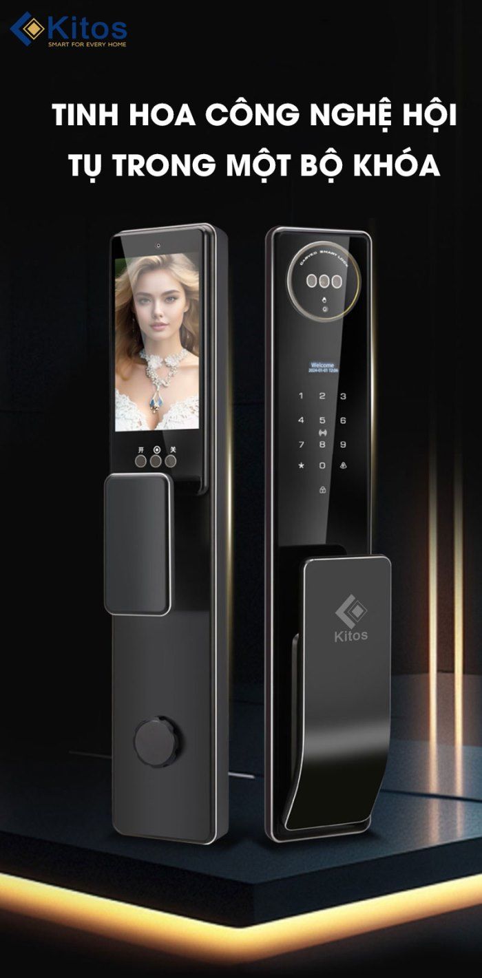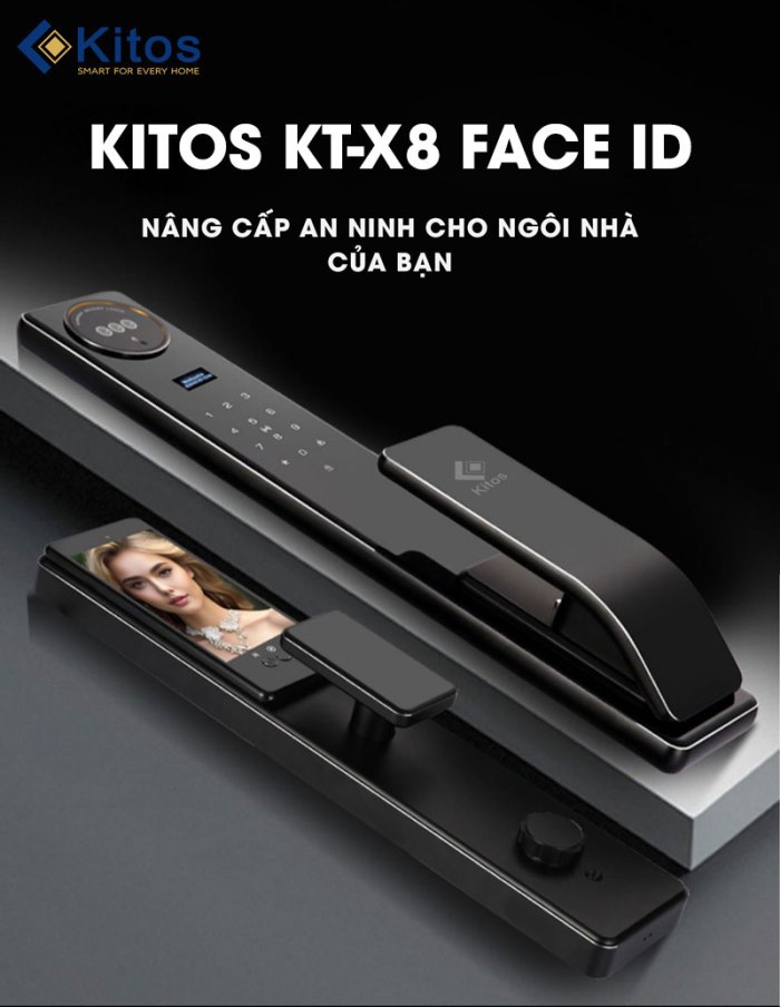Kitos KT X8 Face Id là khóa nhận diện khuôn mặt mới nhất của hãng trong năm 2024. Khóa có kiểu dáng đẹp, chất liệu nhôm hàng không cao cấp và đầy đủ tính năng hiện đại như có thêm camera, màn hình theo dõi và mobile app để đàm thoại với khách đến nhà từ khóa đến điện thoại