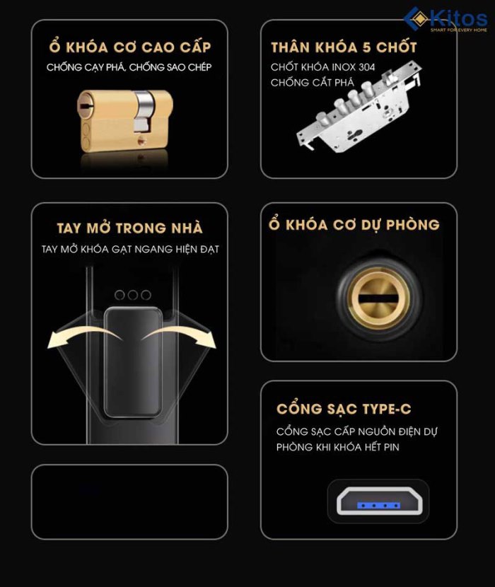 Kitos KT X8 Face Id sử dụng thân khóa được làm từ chất liệu Inox 304 chống gỉ.