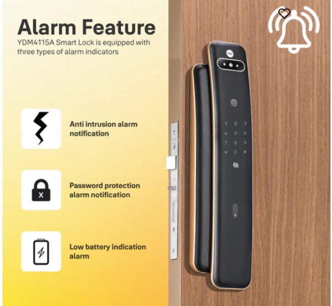 - Khóa còn được trang bị các phương thức mở khóa phổ biến hiện nay như: vân tay, thẻ từ, mã số, chìa cơ. Ngoài ra, nếu cần gia chủ có thể mua thêm phụ kiện (module) để dùng app mobile Yale access/ Yale home (qua bluetooth, wifi/ 4G), hoặc với remote, chuông hình, hoặc với hệ thống nhà thông minh. Với app mobile, gia chủ có thể đóng mở khóa từ xa, nhận thông báo tình trạng khóa, xem lịch sử ra vào, đăng kí thêm hay xóa người dùng ngay trên điện thoại