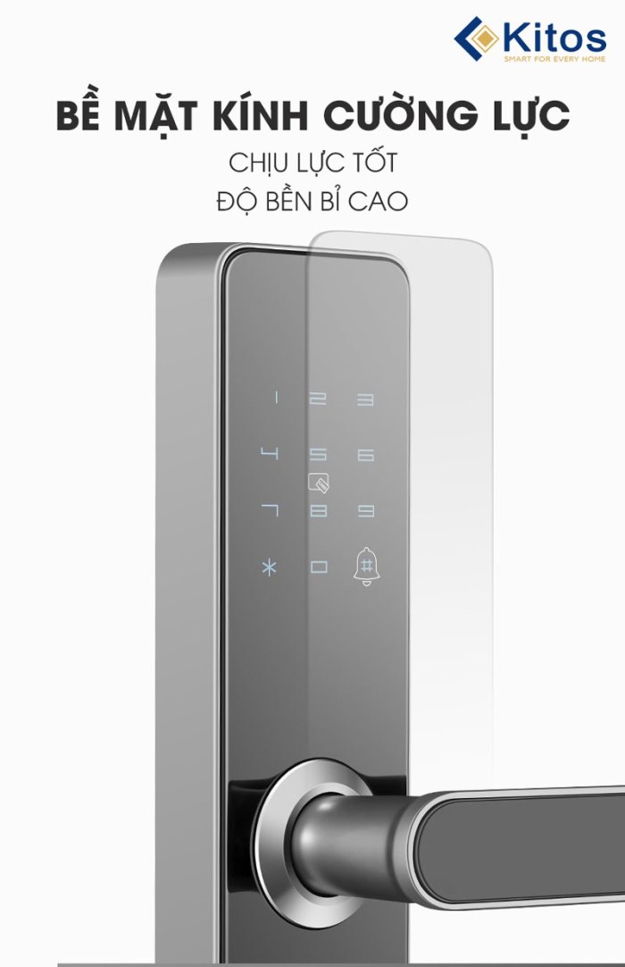 Điều này giúp cho bộ khóa có thể chịu lực va đập, ngoài ra mặt kính cường lực cũng có tác dụng chống trầy xước giúp cho ngoại quan khóa luôn được như mới theo năm tháng