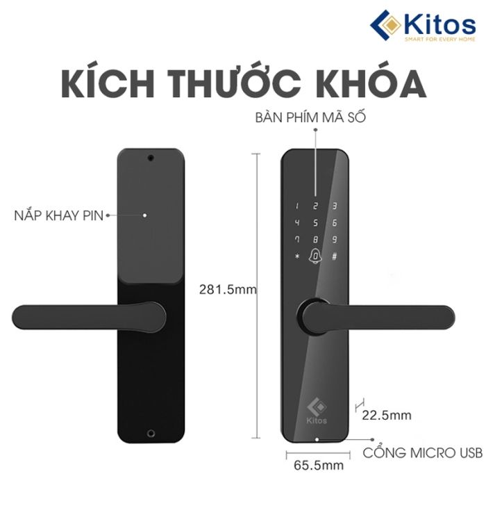 - Kitos KT V2 Pro đăng kí tối đã được 100 thẻ từ, 100 mã số. Dùng app bluetooth TTLock. Có sẵn: 2 thẻ từ nhỏ, 2 chìa cơ. Khi cần mua thêm remote để đóng mở từ xa (giá thêm 300 nghìn)