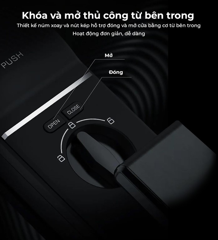- Mở bằng: vân tay, thẻ từ, mã số, chìa cơ, mobile app wifi. Mở rộng: remote