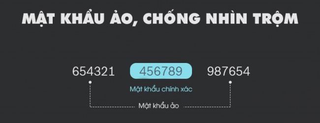 - Mã số ảo: khi cần tránh bị lộ mật khẩu thì người dùng có thể thêm dãy số ảo (tối đa 32 số) vào trước hoặc sau mã số thật (gồm 6 số) khi mở khoá