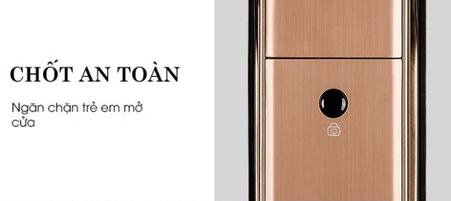 - Chốt an toàn cho trẻ nhỏ: khi ấn nút này thì tay nắm bên trong bị khoá cứng, trẻ nhỏ không tự ý kéo để mở khoá ra ngoài, giúp cha mẹ yên tâm nghỉ ngơi hay tập trung làm việc