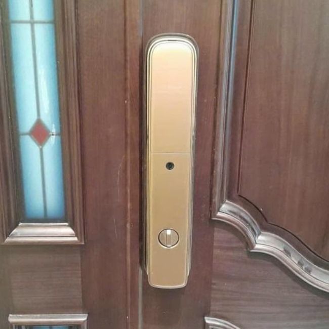 - Ổ khóa tự động chốt. Khi ra vào nhiều thì có thể tắt chế độ tự động, chuyển sang chế độ thông phòng