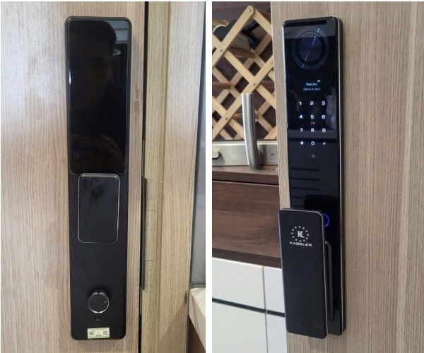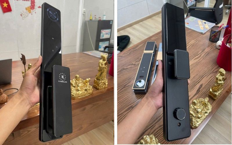 Khóa vân tay cửa gỗ, cửa nhôm đố to. Có mở từ xa bằng bằng điện thoại. Màu đen