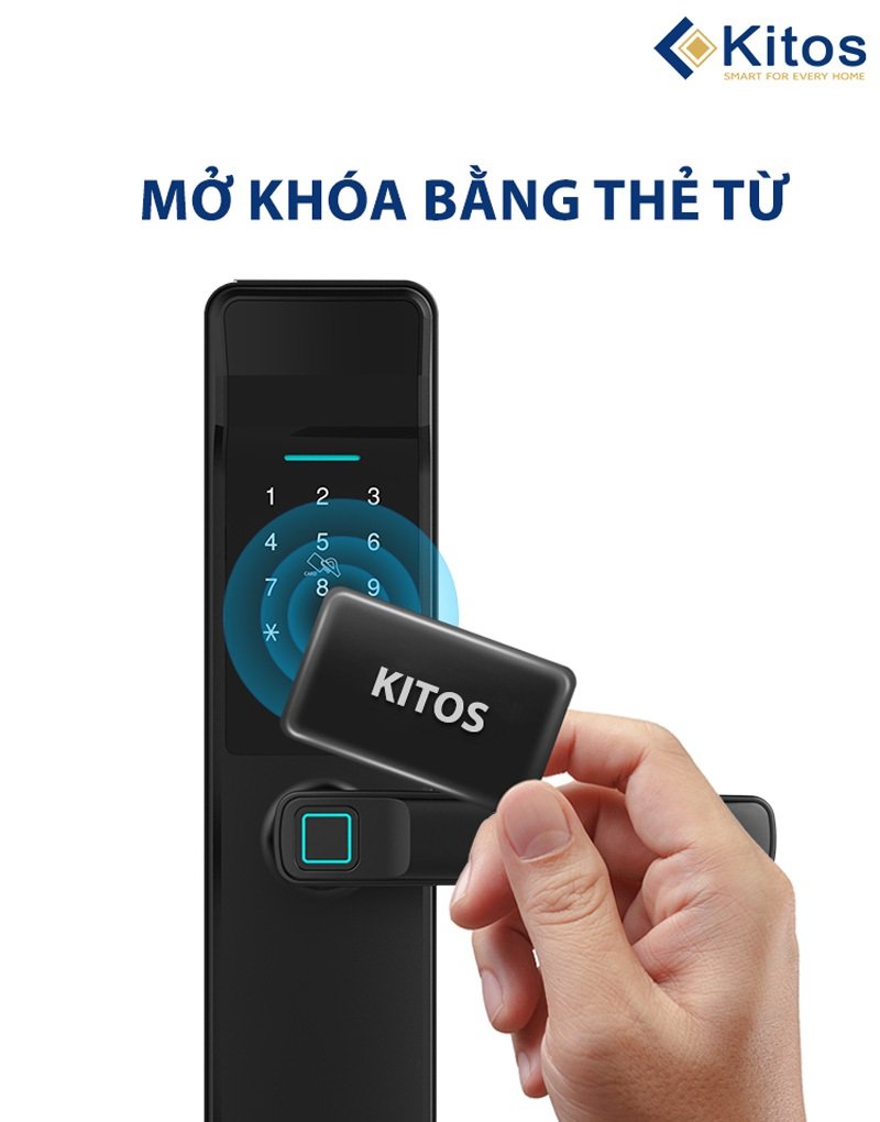 Kitos KT-G300 có 4 phương thức mở khóa: vân tay, mã số, thẻ từ, chìa cơ. Khi cần gia chủ có thể mua thêm remote để đóng mở khóa từ xa (thêm 500 nghìn)
