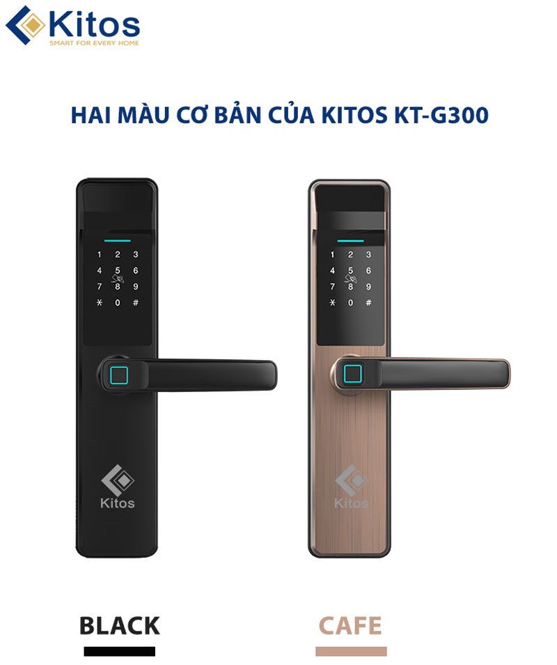 Khóa vân tay cửa gỗ Kitos G300. Có 2 màu: đen và đồng đỏ