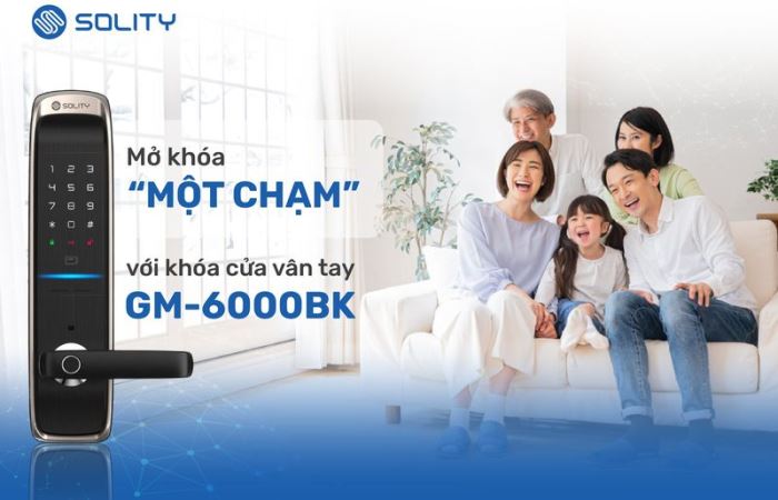 - Solity GM-6000BK có đa dạng phương thức mở khóa: vân tay, thẻ từ, mã số, chìa cơ. Nếu cần, gia chủ có thể mua thêm module để dùng app mobile qua wifi/ 4G. Với app mobile, người dùng có thể mở và quản lý khóa từ xa (cấp hoặc xóa quyền mở khóa của người dùng ngay trên điện thoại, xem lịch sử ra vào của các người dùng)