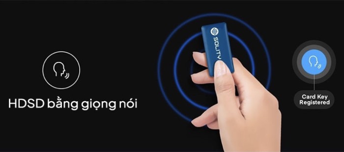- Solity GM-6000BK đăng ký được 100 vân tay, 100 thẻ từ (13.6Mhn, RF chip/ A type), 4 mã số người dùng. Có sẵn: 2 thẻ từ nhỏ kích thước 2 x 4 cm treo chùm chìa khóa, 2 thẻ từ nhỏ NFC dán vào mobile, 2 chìa cơ. Module để dùng app wifi giá 1,2 triệu