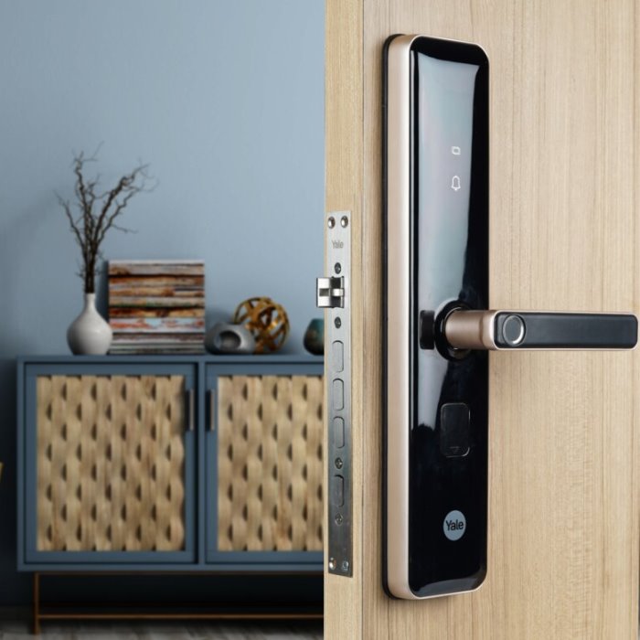 Yale YDME 200 NxT có kích thước cỡ to, phù hợp cho cửa chính. Vị trí quẹt vân tay ngay trên tay nắm giúp mở khóa nhanh chóng chỉ với 1 chạm. Ngoài ra, khóa cũng tích hợp chuông cửa ngay trên thân khóa ngoài