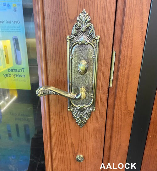 - Có lẫy ngay phía trên tay cầm bên ngoài để gạt cò gió mở khóa (rất tiện lợi. Không cần tay gạt như loại khóa đại sảnh thông thường)