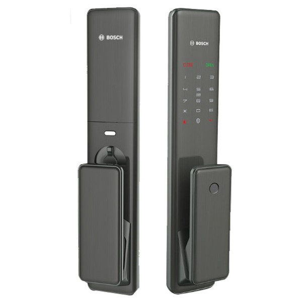 Bosch FU 750 màu xám của thương hiệu khóa Đức nổi tiếng cao cấp, có thiết kế kiểu dáng Push- Pull (Kéo- Đẩy) sang trọng và hiện đại, với chỗ quẹt vân tay ngay trên tay cầm