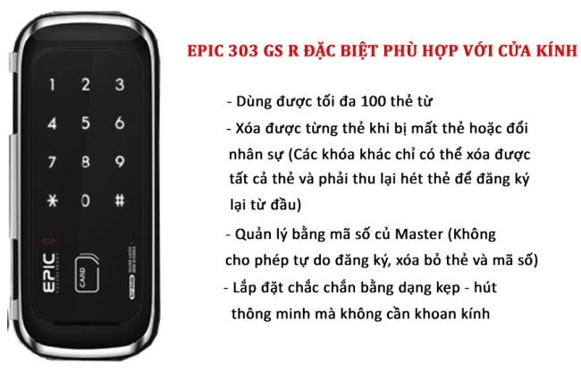 Epic ES 303G là sản phẩm dành riêng cho cửa kính với những ưu điểm như: lắp đặt dễ dàng không cần khoan cắt kính; bộ nhớ lớn