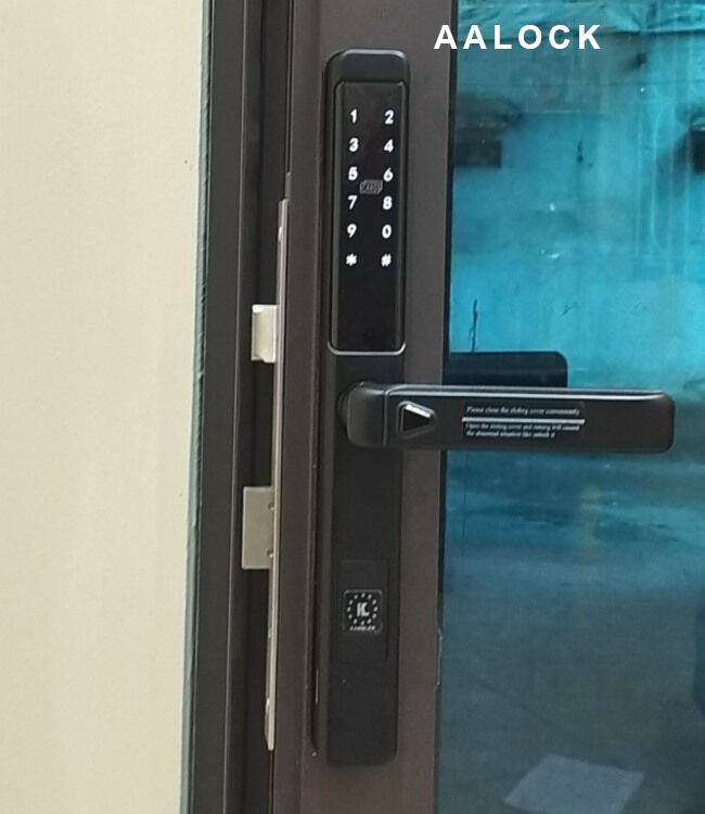 Khóa điện tử cửa nhôm có mở từ xa bằng điện thoại. Thân khóa ngoài chịu được nước mưa