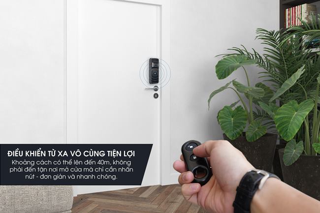 - Mở khóa bằng: vân tay, thẻ từ, mã số. Mở rộng: remote, app bluetooth, app wifi