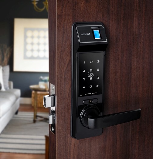 - Mở cửa bằng: vân tay, thẻ từ, mã số, chìa cơ. Có thể lắp thêm phụ kiện để dùng điều khiển từ xa (remote control), và kết nối videophone