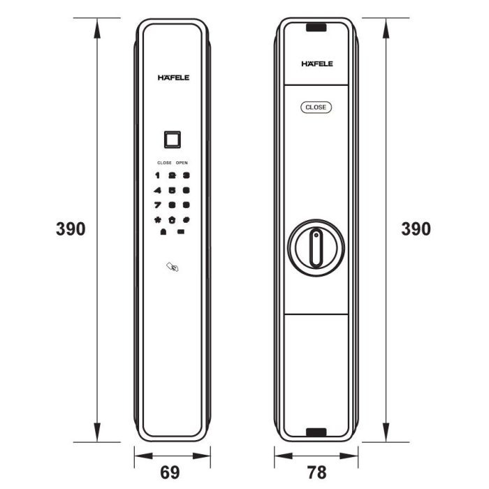 - Mở cửa bằng: vân tay, thẻ từ, mã số, chìa khóa cơ. Có thể lắp thêm phụ kiện Z-wave để kết nối hệ thống nhà thông minh; hoặc phụ kiện bluetooth để mở và quản lý khóa bằng app trên smartphone