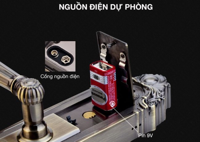 - Nguồn điện: 5 pin AA alkaline (pin kiềm khô), dùng trong khoảng 1 năm; Nguồn điện khẩn cấp: Pin 9V (đấu bên ngoài trong trường hợp hết pin)