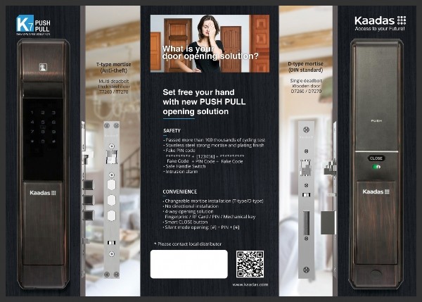 - Mở khóa bằng: vân tay, thẻ từ, mã số, chìa cơ. Có thể lắp thêm phụ kiện để mở khóa qua bluetooth (smart phone), hoặc điều khiển từ xa (remote control)