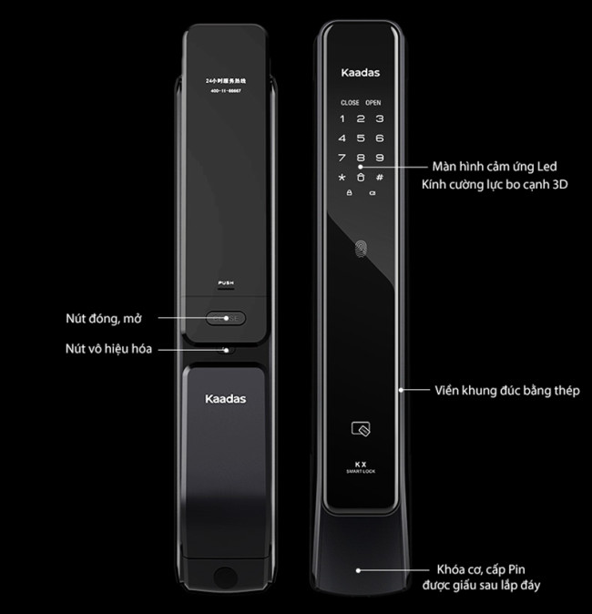 - Sản phẩm thời thượng, tân tiến nhất của hãng khóa Kaadas (được ví như Iphone X). Được thiết kế bởi nhà thiết kế nổi tiếng của Tập đoàn BMW (Georg Allmendinger)