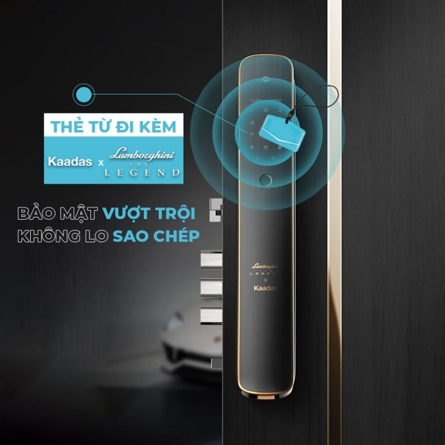 - Kaadas Lamborghini có mở khóa bằng: vân tay, thẻ từ, mã số, chìa cơ. Có thể mua thêm module để mở bằng remote