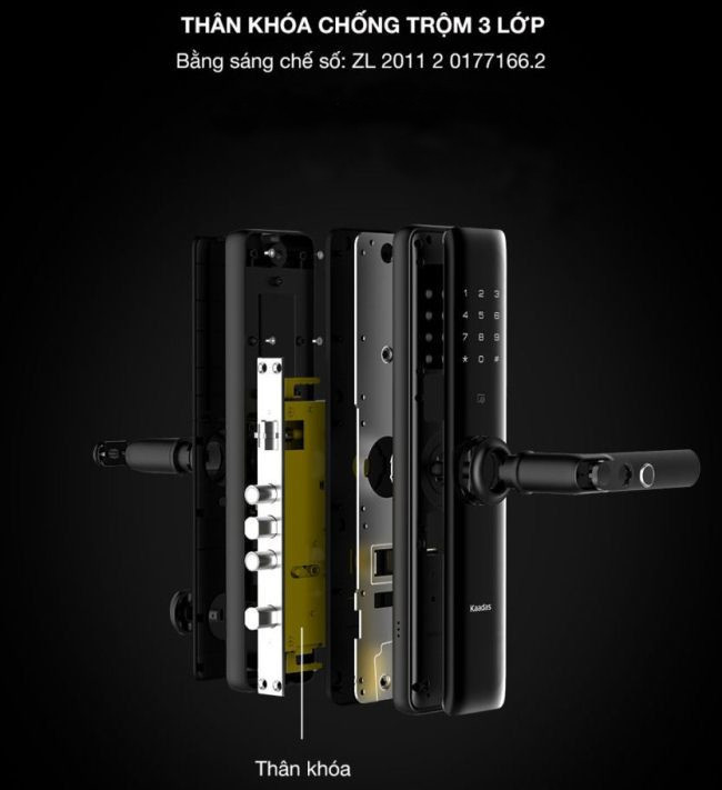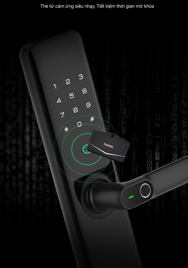 - Mở khóa bằng: vân tay, thẻ từ, mã số, chìa cơ. Có thể lắp thêm phụ kiện để mở khóa qua bluetooth (smart phone), hoặc điều khiển từ xa (remote control)