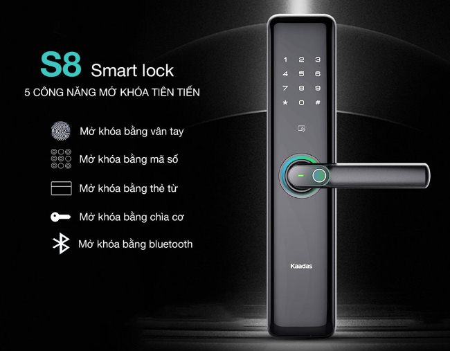 Kaadas S8 là bản nâng cấp hoàn hảo của Kaadas S7, với thiết kế mới đẹp hơn, tinh tế, sang trọng và tích hợp đầy đủ các chức năng bảo mật tân tiến. Khóa sử dụng vật liệu hàng đầu trong chế tạo, được đúc từ hợp kim nguyên khối tạo cảm giác chắc chắn cho người sử dụng. Vỏ khóa được mạ bằng công nghệ nano tạo độ bền cao và sang trọng