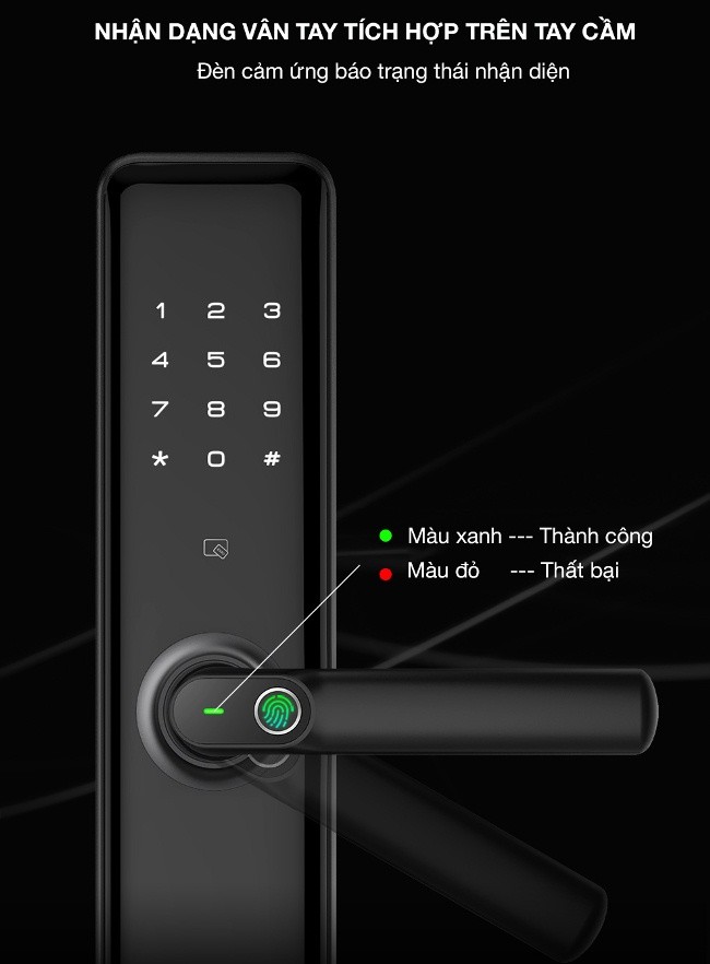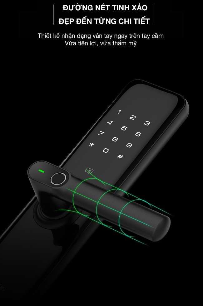- Vị trí quẹt vân tay ngay trên tay cầm khiến cho việc mở khóa càng thuận tiện hơn