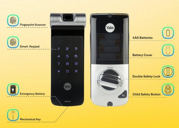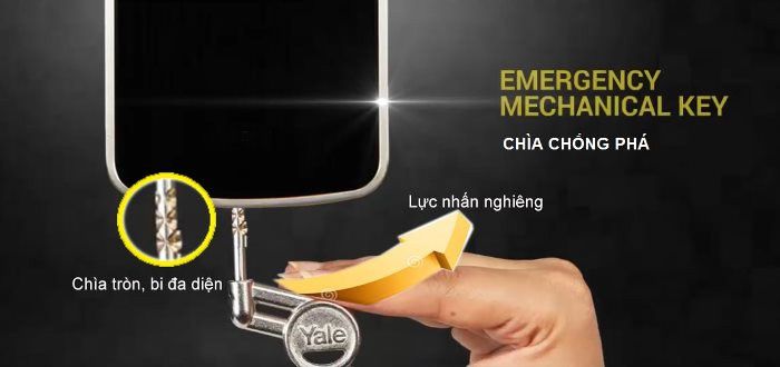 - Khóa Yale YDD724A đăng kí tối đa được 100 vân tay, 100 thẻ từ, 100 mã số người dùng, 1 mã số chủ để quản lý càiặt, 1 mã số khách, 1 mã số dùng 1 lần. Có sẵn 2 thẻ từ, 3 chìa khóa chống sao chép