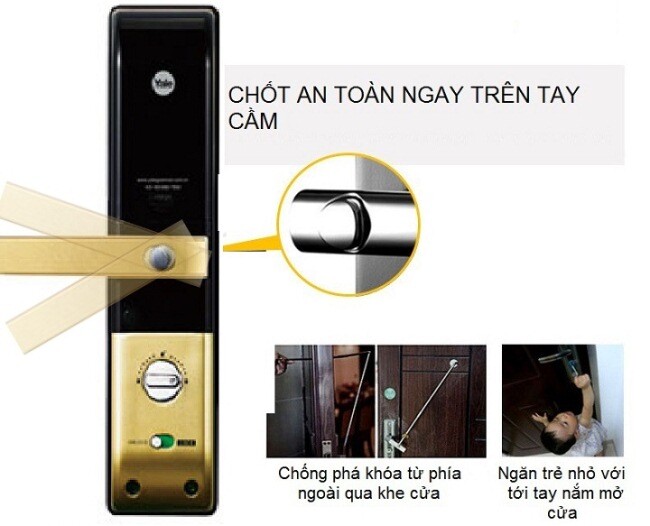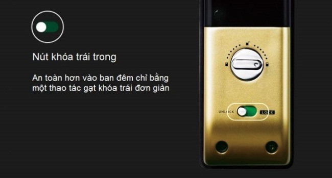 - Chức năng khóa trái ngoài (nếu có kẻ trộm đột nhập vào nhà từ ban công, cửa sổ và mở cửa chính ra ngoài thì khóa sẽ phát âm thanh báo động). Và khóa trái trong/ chống làm phiền (vô hiệu hóa các phương thức xác thực như mật khẩu và vân tay từ bên ngoài. Chỉ mở được bằng mã số chủ hoặc chìa khóa)